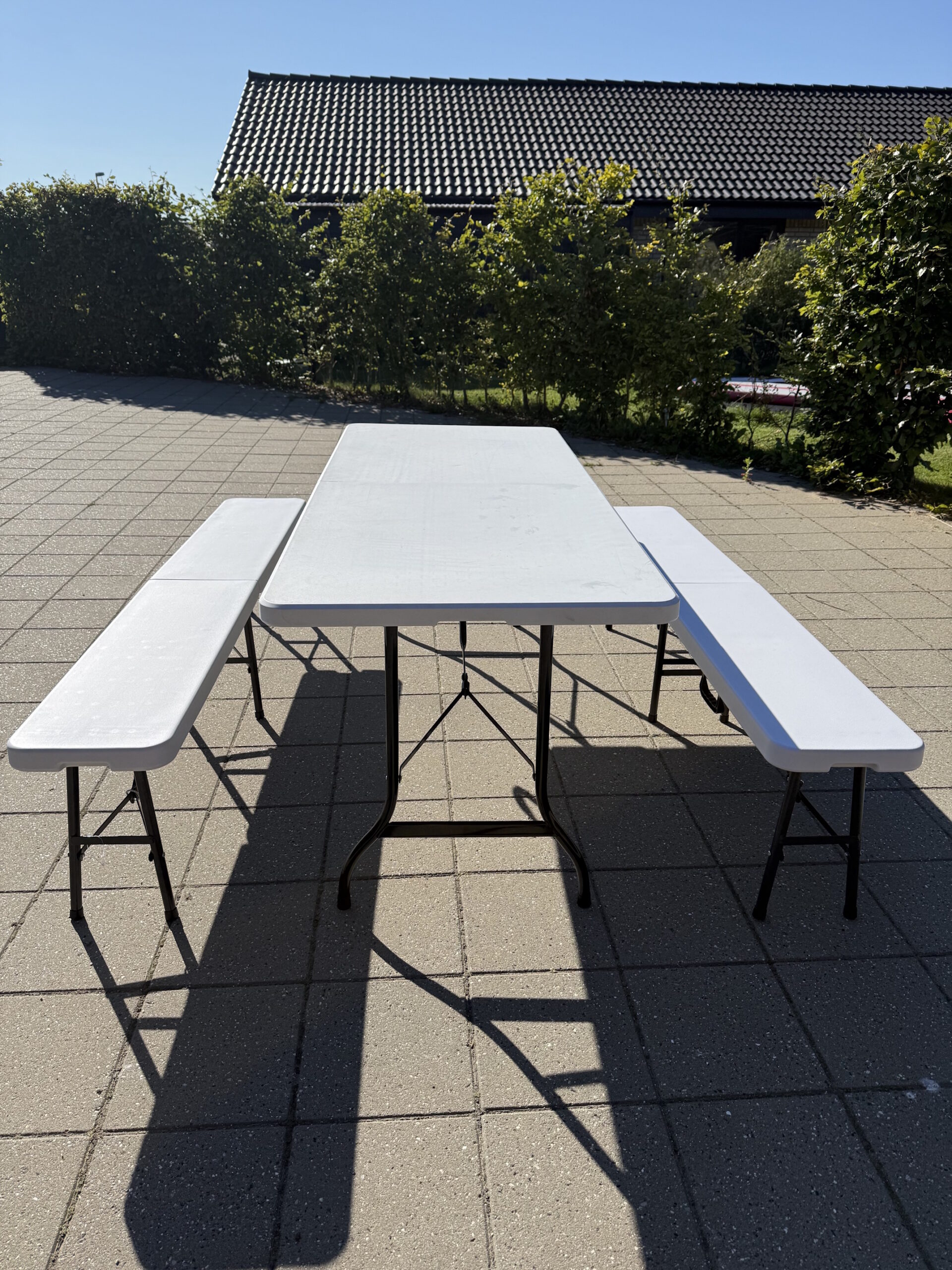Mangler du ekstra siddepladser, der er hurtige at sætte op, stabile og pæne at se på? Vores foldbare bænke i hvid med sorte ben giver dig netop det. De klappes ud på få sekunder, fylder minimalt under transport og opbevaring og passer ind i alt fra studenterfester, havefester og bryllupper til møder, messer og pop-up events.