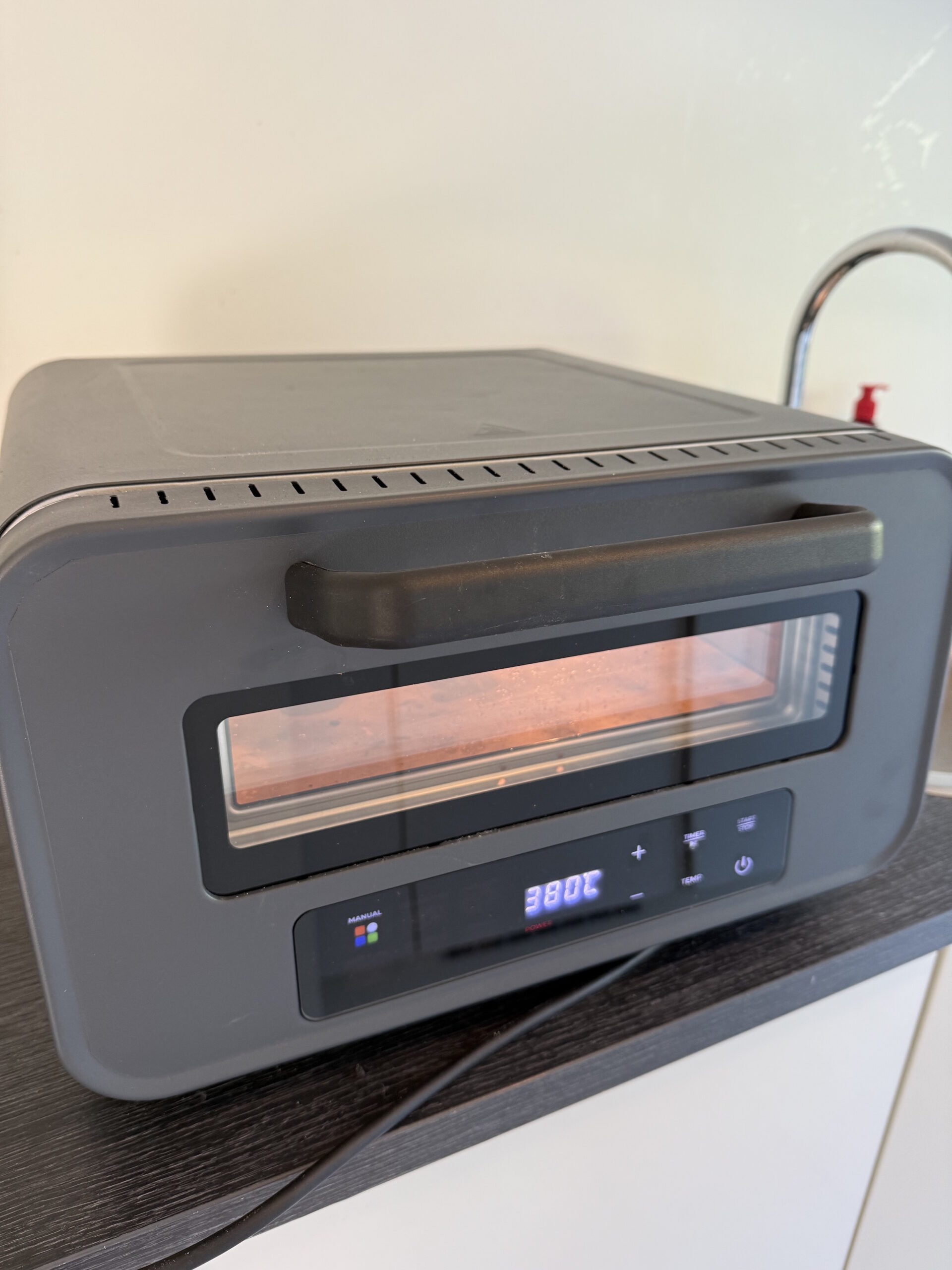 - Hurtig tilberedning: Den høje varme (op til 430°C) sikrer, at pizzaerne er færdigbagt på blot 2-3 minutter