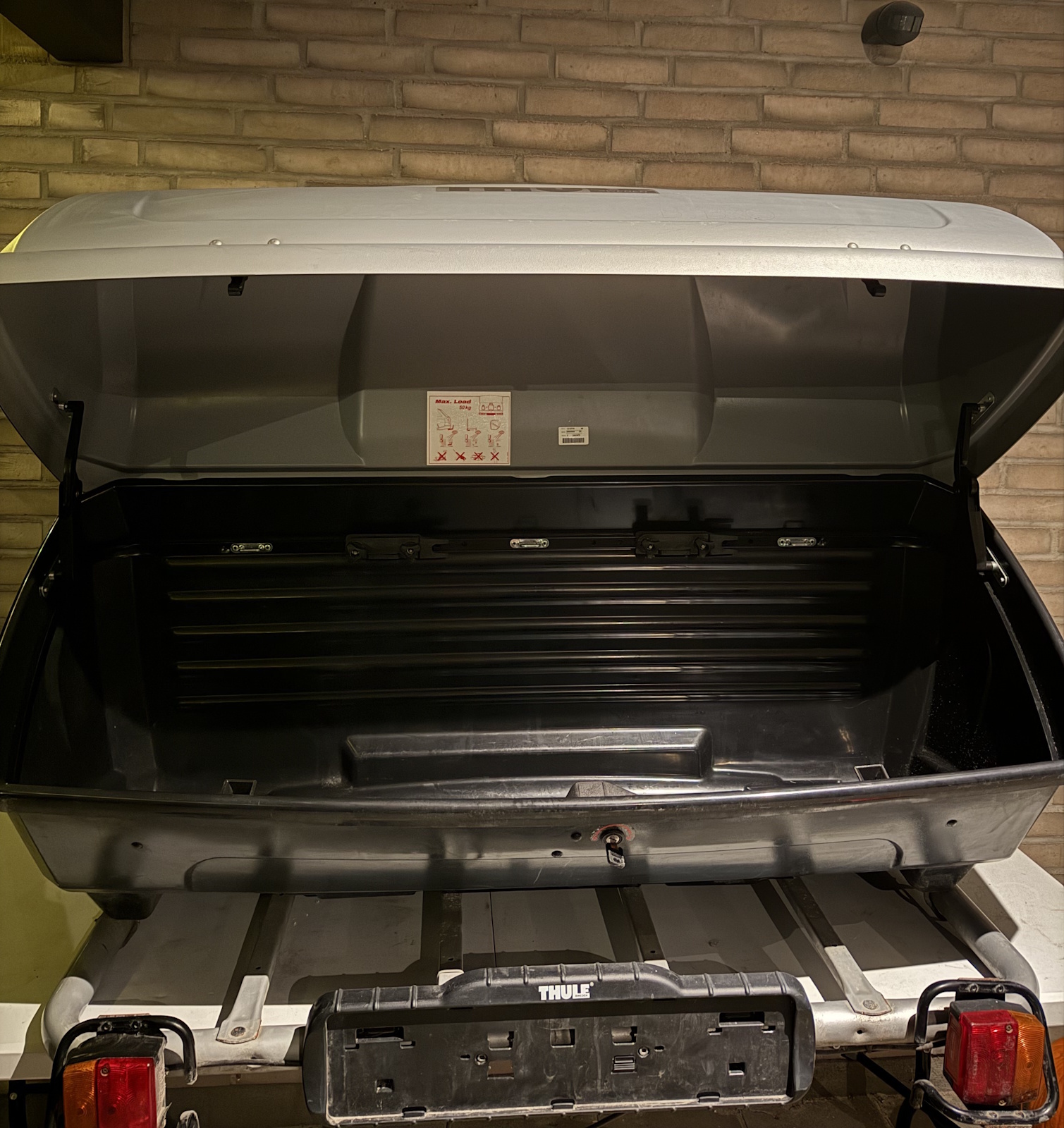 Placering: Bagmonteret på Thule EasyBase (med lygtebom/nummerpladeholder)